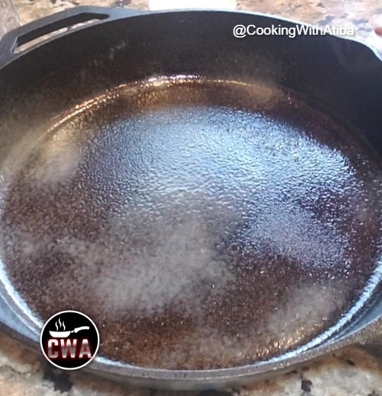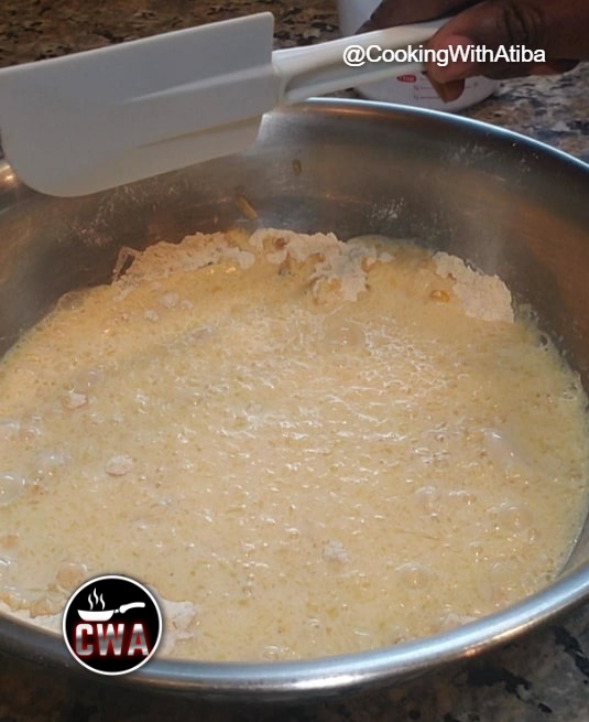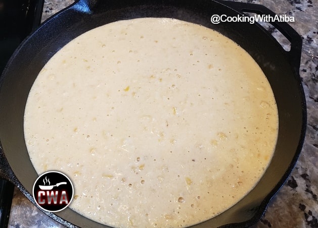 Scrape all the batter into your cast iron pan evenly
