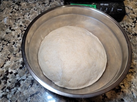 Take the mixing bowl off the machine and gently kneed the dough by hand in the bowl for 1 minute.