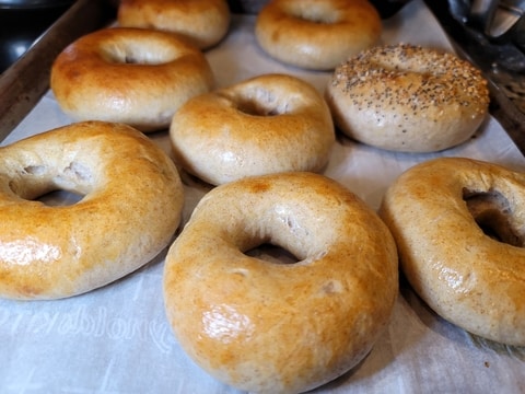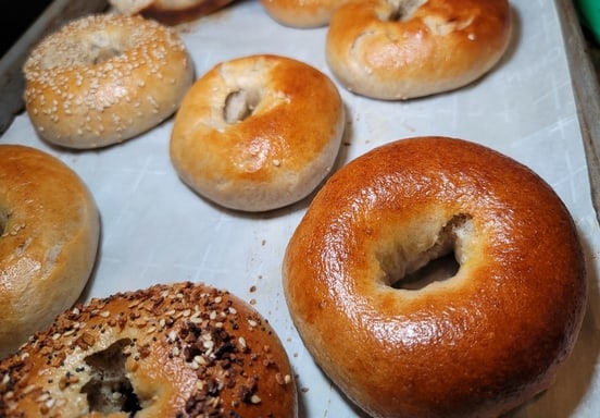 Chewy, dense sourdough bagels with New York-style crust.
