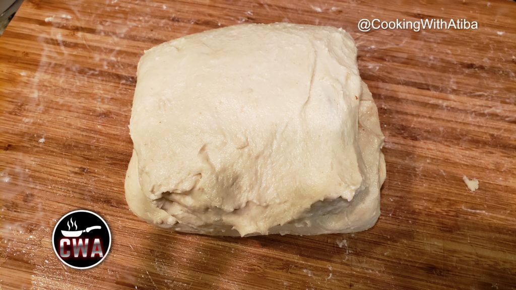 Using a rolling pin roll the dough into a rectangle that is no more than 6 inches wide. Roll the dough to approximately 1/4 inch thickness