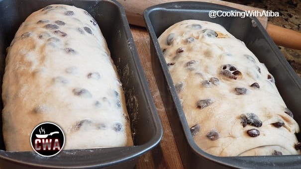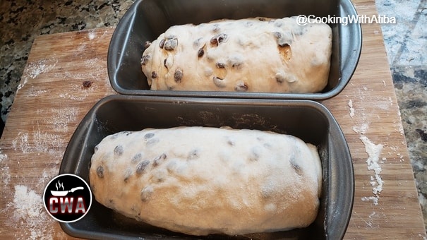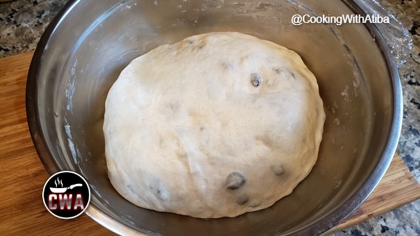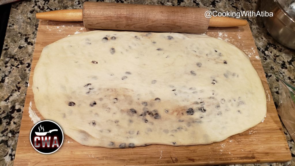 After 30 minutes Laminate the dough and add the raisins